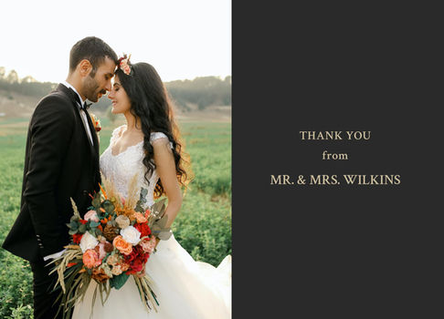 Express your gratitude with Thank You Cards that leave a lasting impression. Featuring a cherished photo from your wedding day and a personal message, these cards let your heartfelt thanks shine through in a beautiful and meaningful way.